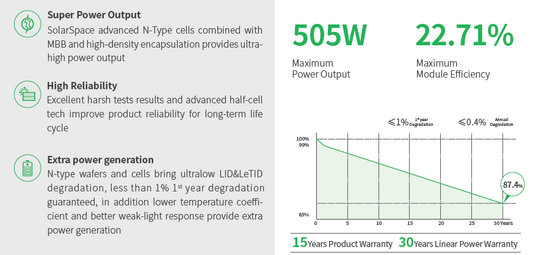 SolarSpace zonnepanelen is een wereldwijd erkend merk van zonnecellen en modules, met productiecapaciteit in de gigawatt klasse. Ze staan bekend om hun Tier 1 status, wat wijst op betrouwbaarheid, kwaliteit en technologische maturiteit. Hun panelen zijn “high-efficiency”, wat betekent dat ze relatief veel energie opwekken per m². SolarSpace richt zich op zowel residentiële als commerciële toepassingen. Kortom: een modern, krachtig en wereldwijd toonaangevend merk zonnepanelen geschikt voor een ieder die op lange termijn betrouwbaarheid en rendement zoekt.