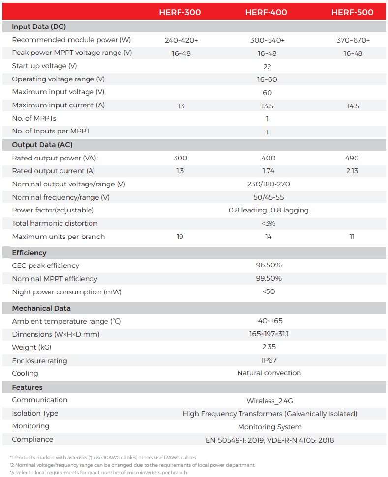 Der HERF-500 gehört zur HERF-Serie von Mikro-Wechselrichtern von Estar (Xiamen E-Star Energy). Er wandelt Gleichstrom (DC) in Wechselstrom (AC) pro Solarmodul um und eignet sich für den Einsatz im Stromnetz oder im privaten Bereich. Er gehört wie die Varianten HERF-300 und HERF-400 zur Klasse der Einzelgeräte-Mikro-Wechselrichter.