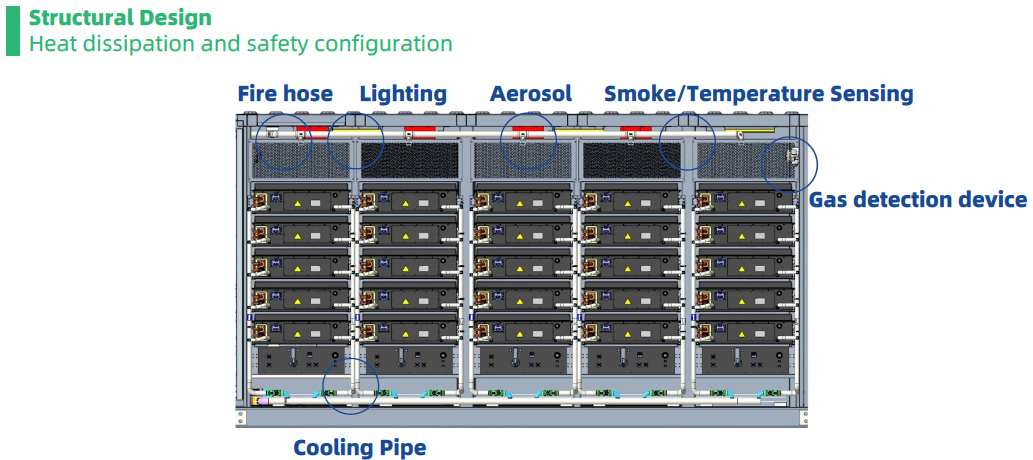 Het systeem is vloeistofgekoeld om thermische stabiliteit te verbeteren en is geschikt voor snelle uitrol (container-form factor) in commerciële/industriële scenario’s.
