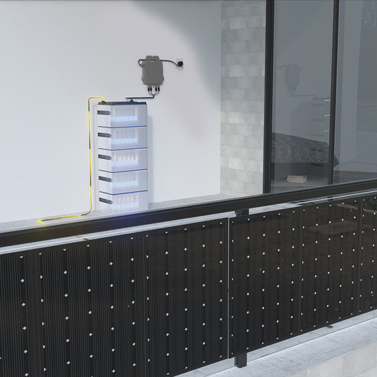 Balcony or facade installation with solar panels to store energy (balcony power system)