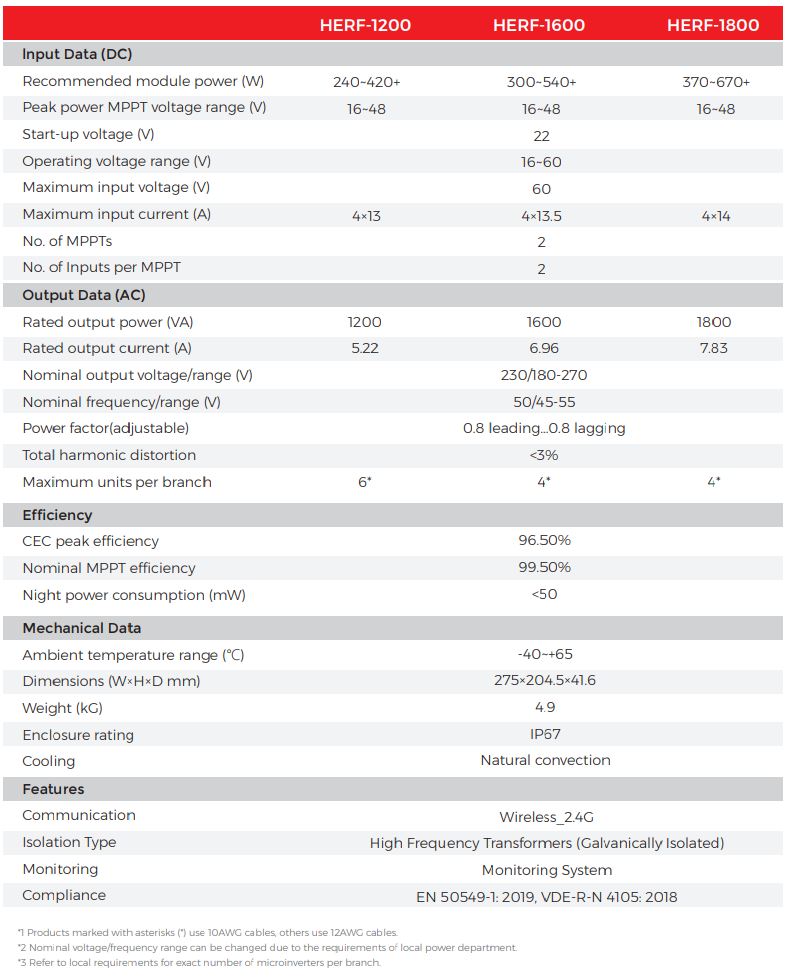 Hoge efficiëntie: Met een CEC-efficiëntie van 96,5% en een MPPT-efficiëntie van 99,5% levert de HERF-1600 uitstekende prestaties.