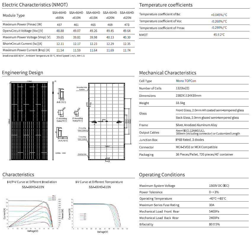 Model: SSA-66HD 630 Wp (Silver/white frame, n-type TOPCon, bifaciaal glas-glas)