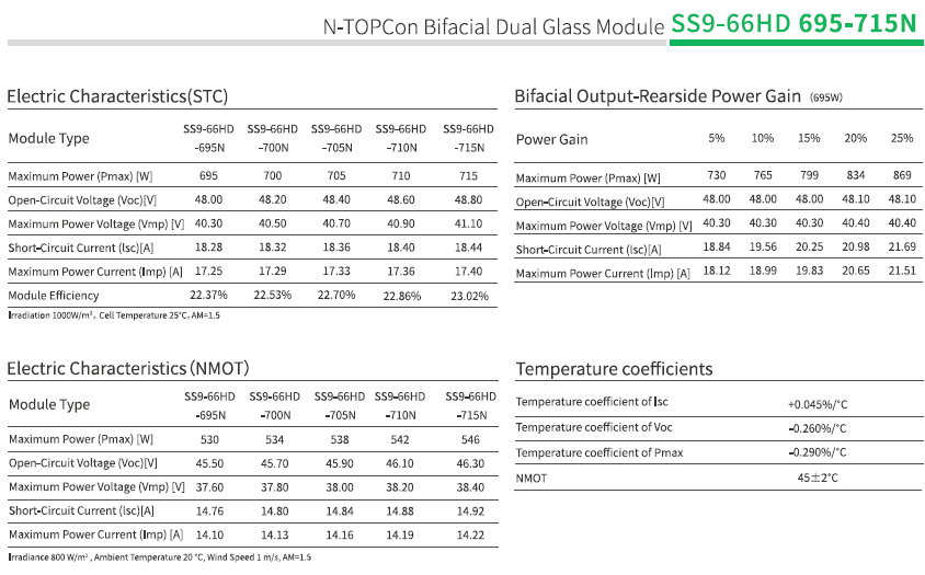 | Module efficiency (STC) | circa 22,53% bij 700 Wp variant |