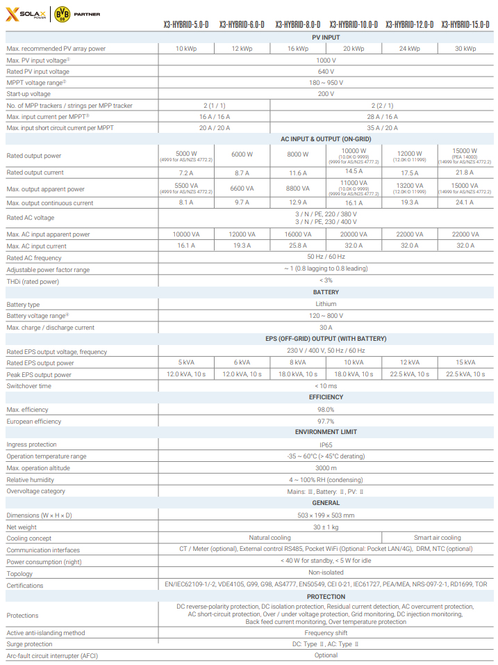De X3‑HYBRID is geschikt voor huishoudens met een middelgroot PV‑systeem en een batterijopslag, waar drie fasen gebruikt worden om de belasting te verdelen en is verkrijbaar van 5kW tot en met 12kW.